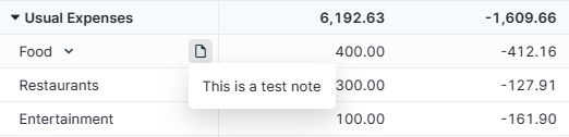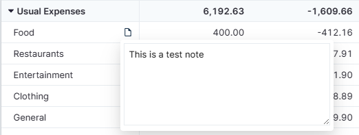 It is possible to add notes to Categories. To do this, hover over the category that you would like to add a note to. A paper icon will appear.