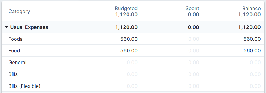 You can see in the budget that our categories have now been successfully merged and the positive balance moved to the new category.