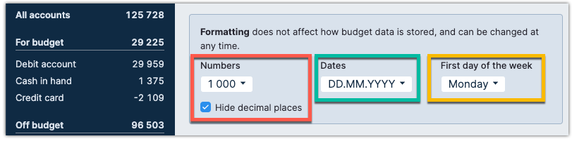 - If you want to change the date format you are most comfortable with, you can use the dropdown in the green box.