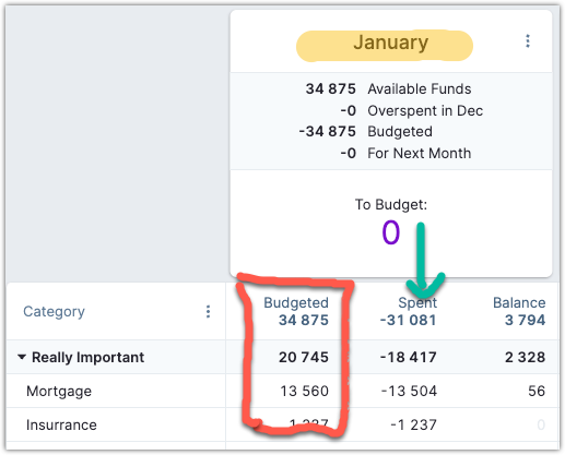 Arrows can inadvertently be misunderstood as pointing from something rather than to. As we see in the example below, the reader can not be sure if the arrow means the column, the column header or if To Budget is involved.
