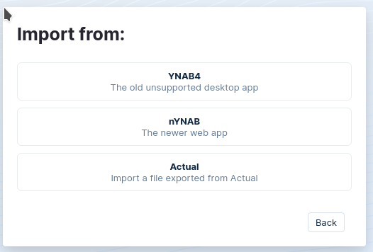 If you import credit cards with previous debt, you must handle these differently. Otherwise, your budget months will show overspending. Actual does not handle carrying over debt the same way, but offers a more manual approach.